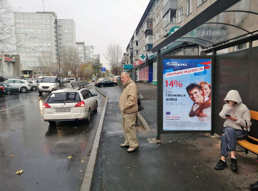 Примеры рекламы на остановках в Красноярске представлены на фото: