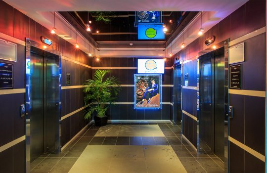 Пример брендирования лифтов в бизнес-центрах: